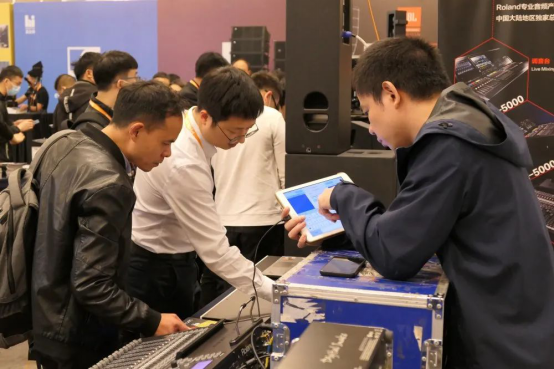 爆款產(chǎn)品M-200I將高聲音品質(zhì)、便捷操作和高度擴(kuò)展性集于一身,內(nèi)置32路輸入輸出,可搭配Ipad遙控使用,做到真正的集成一體,隨時(shí)工作,開(kāi)箱即用?;顒?dòng)現(xiàn)場(chǎng)準(zhǔn)備了多臺(tái)M-200i設(shè)備,讓大家親手操作,體驗(yàn)設(shè)備使用的便捷。