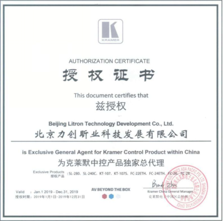 力創(chuàng)昕業(yè)始終肩負(fù)著為客戶提供最優(yōu)化的多媒體視聽解決方案的使命,從未停歇。感謝Kramer的支持與信賴,在未來日子里,力創(chuàng)昕業(yè)將與Kramer一同努力,攜手共進(jìn),為客戶提供優(yōu)質(zhì)、完整的多媒體視聽解決方案!